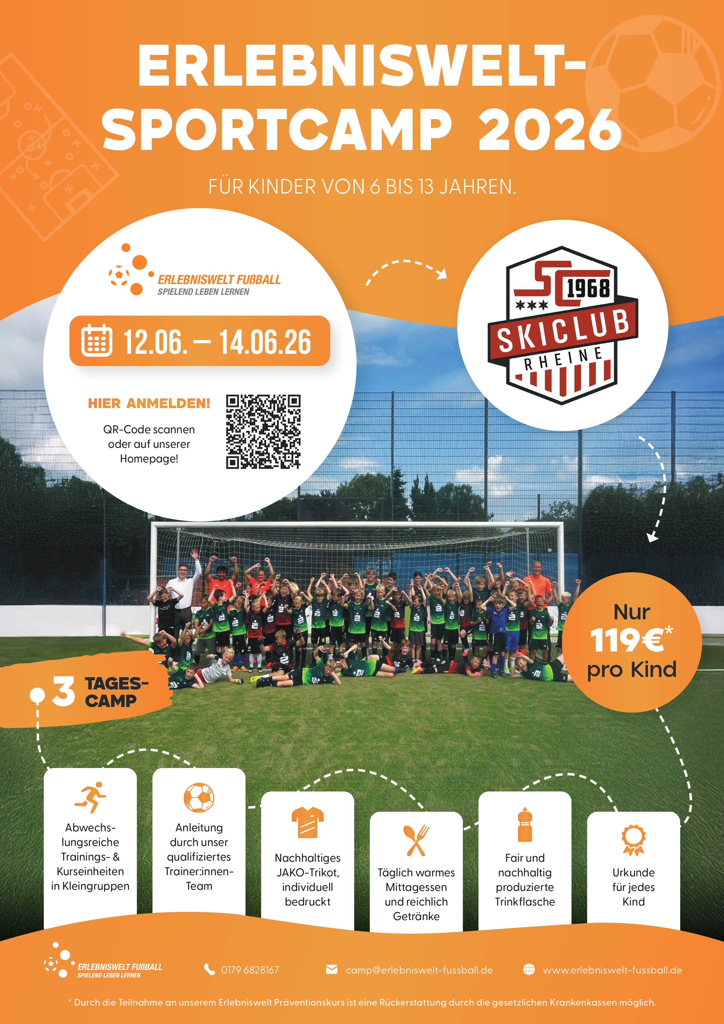 Erlebniswelt-Sportcamp 2026 für Kinder von 6 bis 13 Jahren vom 12. bis 14. Juni 2026 auf unserem Vereinsgelände.