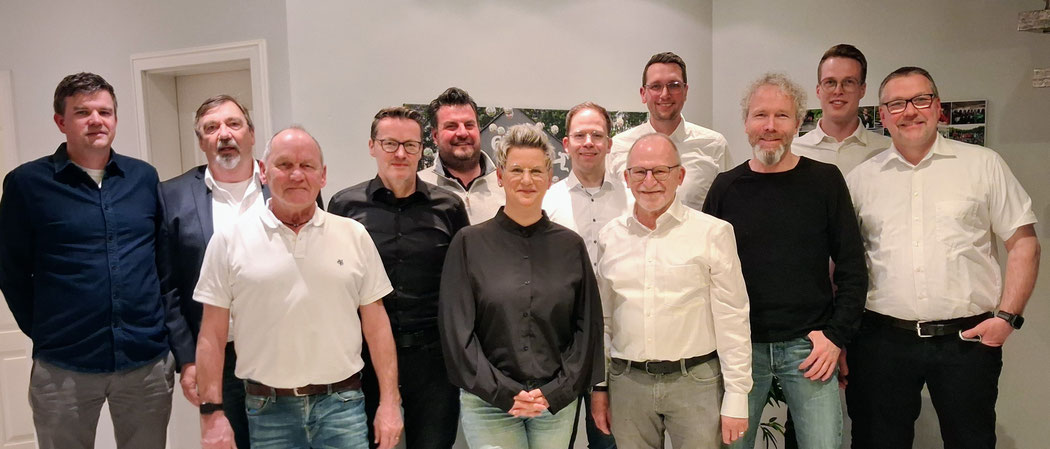 im Bild v.l.: Kai Lübbers (Pressewart), Karl Wilms (1. Schriftführer), Georg Ross (Liegenschaftswart), Thorsten Pledl (Sozialbeauftragter), Carsten Blanke (1. Beisitzer), Renate Schmidt (2. Präventionsbeauftragte),Fabian Hilgenstöhler (2. Beisitzer),Hans Poplutz (1. Vorsitzender), Niklas Heckmann (Kassierer), Andreas Ovel (Präventionsbeauftragter), Simon Jaspers (Social Media Verantwortlicher) und Frank Brüggemann (2. Vorsitzender)